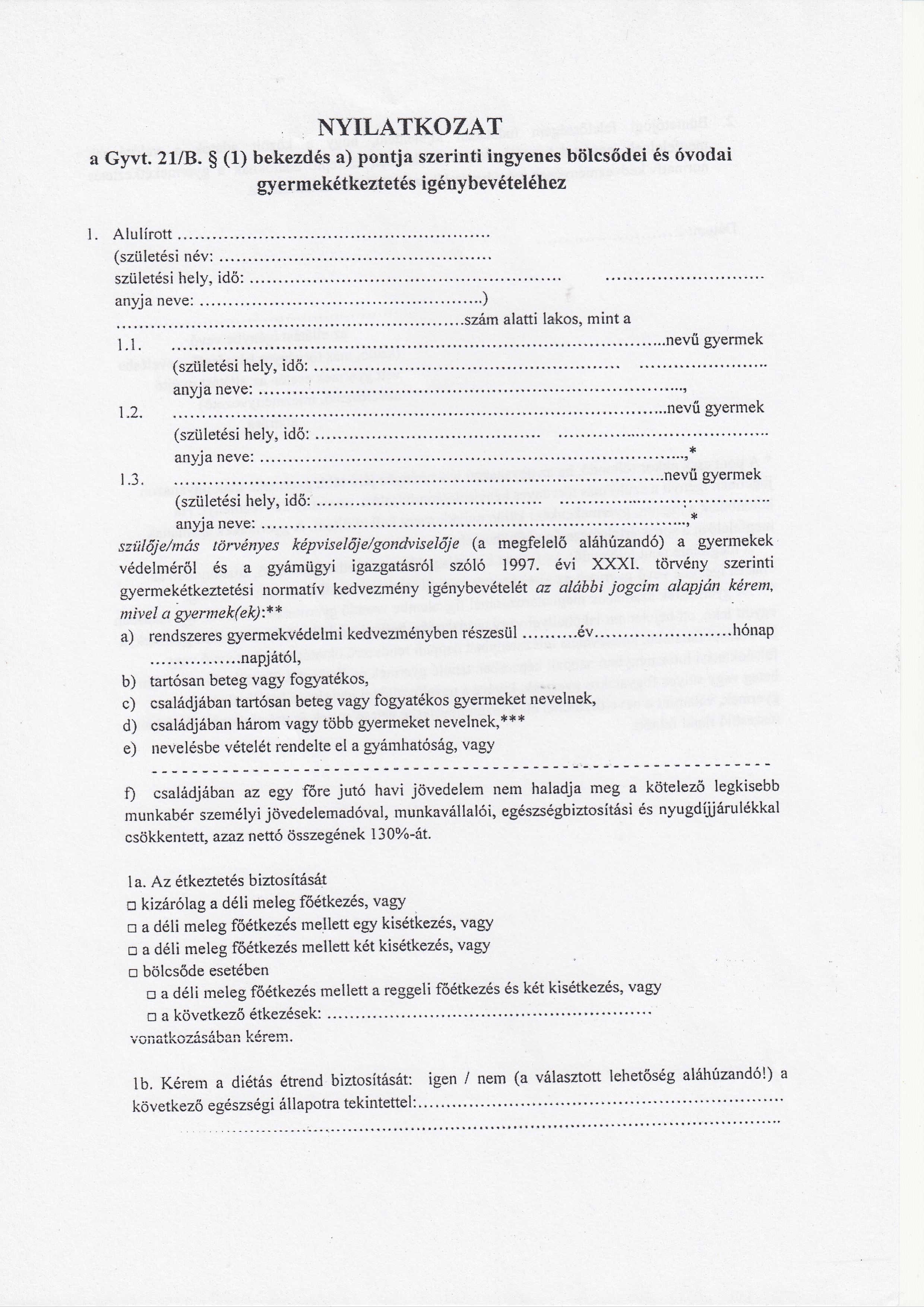 Nyilatkozat ingyenes étkezőknek 1.oldal